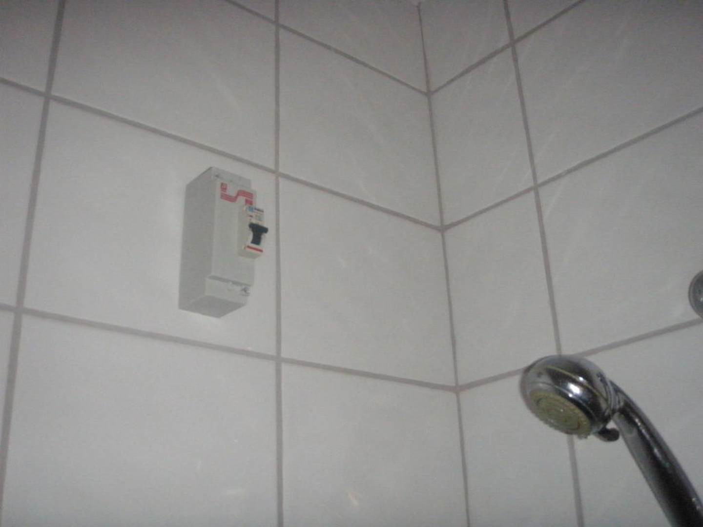 Oberhalb der Dusche hängt die Sicherung fürs Bad