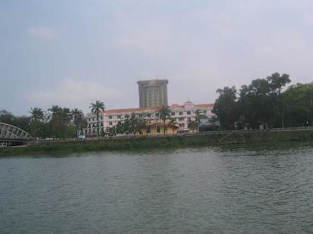 Hotel vom Fluss betrachtet