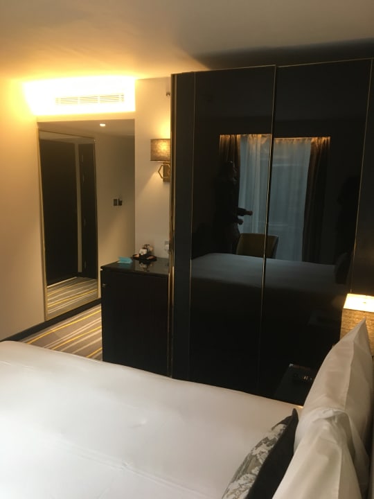Großer Schrank mit Minibar, die aber leer war. Das Zimmer war recht eng.