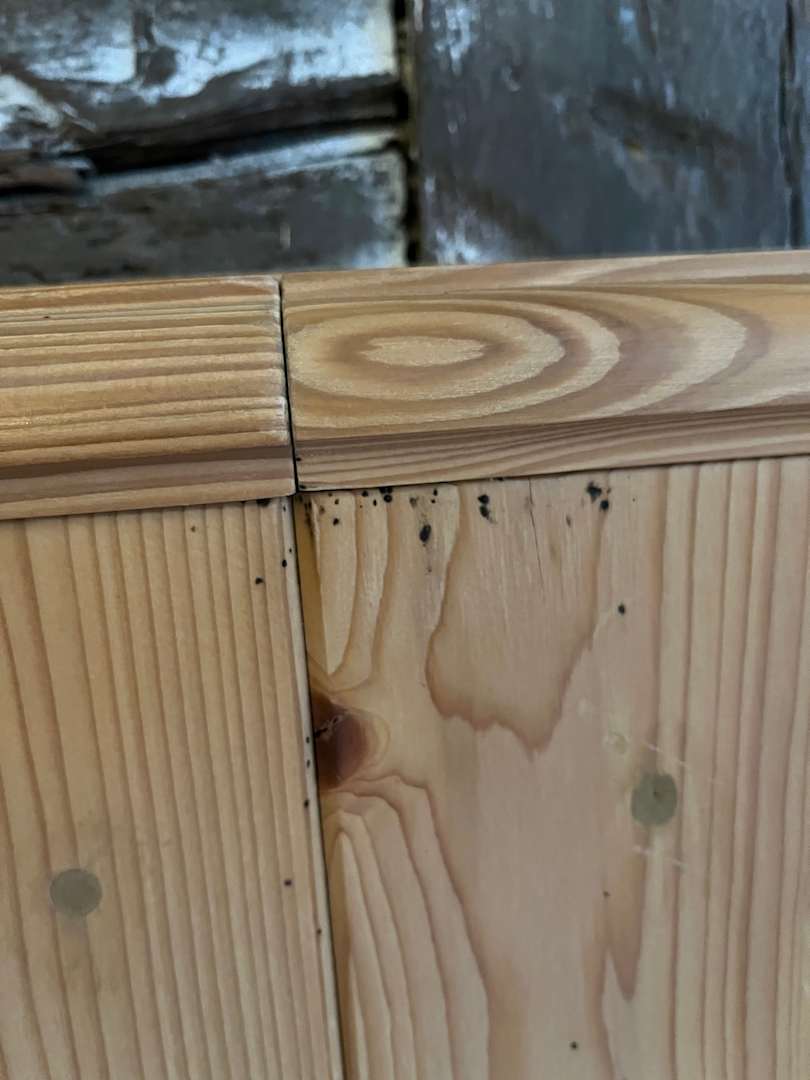Spuren von Bettwanzenkot (schwarze Punkte)