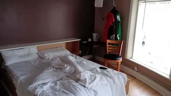 Doppelbett mit Fenster zur Straße