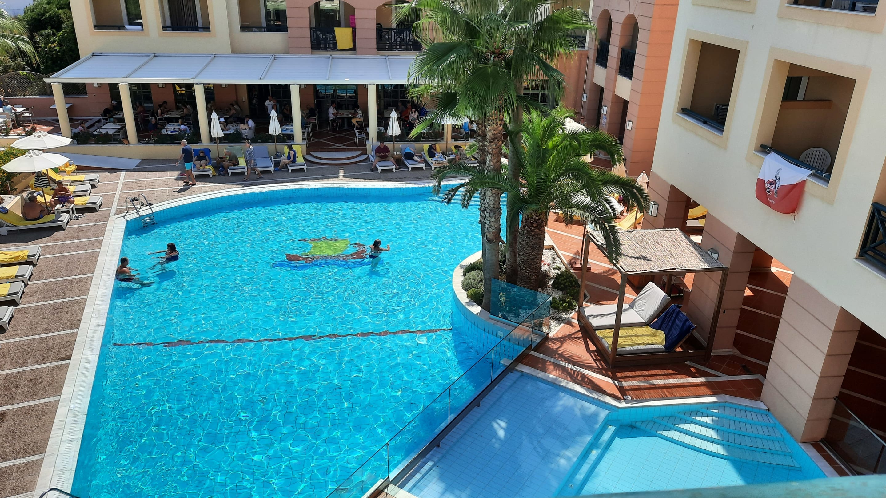 Pool und Blick zum Restaurant