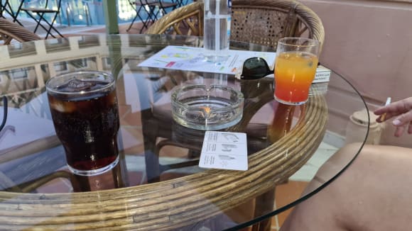 Barcardi Cola und Cocktail Tequila Sunrise (All-in Getränke-Angebot abends an der Bar).