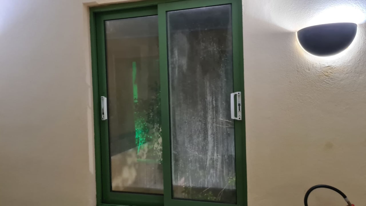 Ein Fenster im Hotelinnenbereich.