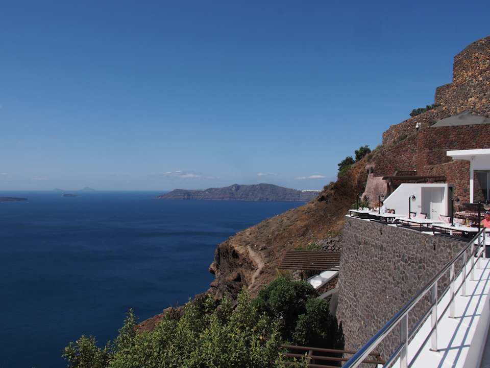 Blick auf die Frühstücksplätze im Freien