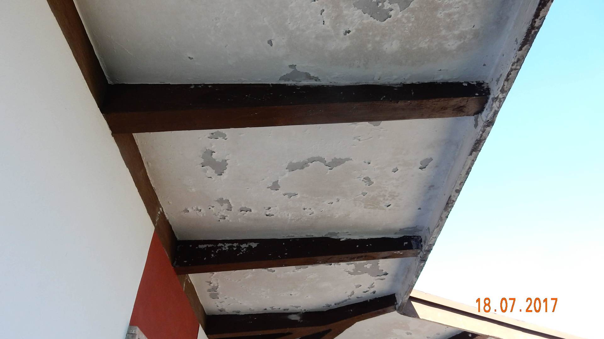 So sah die Decke über dem Balkon aus