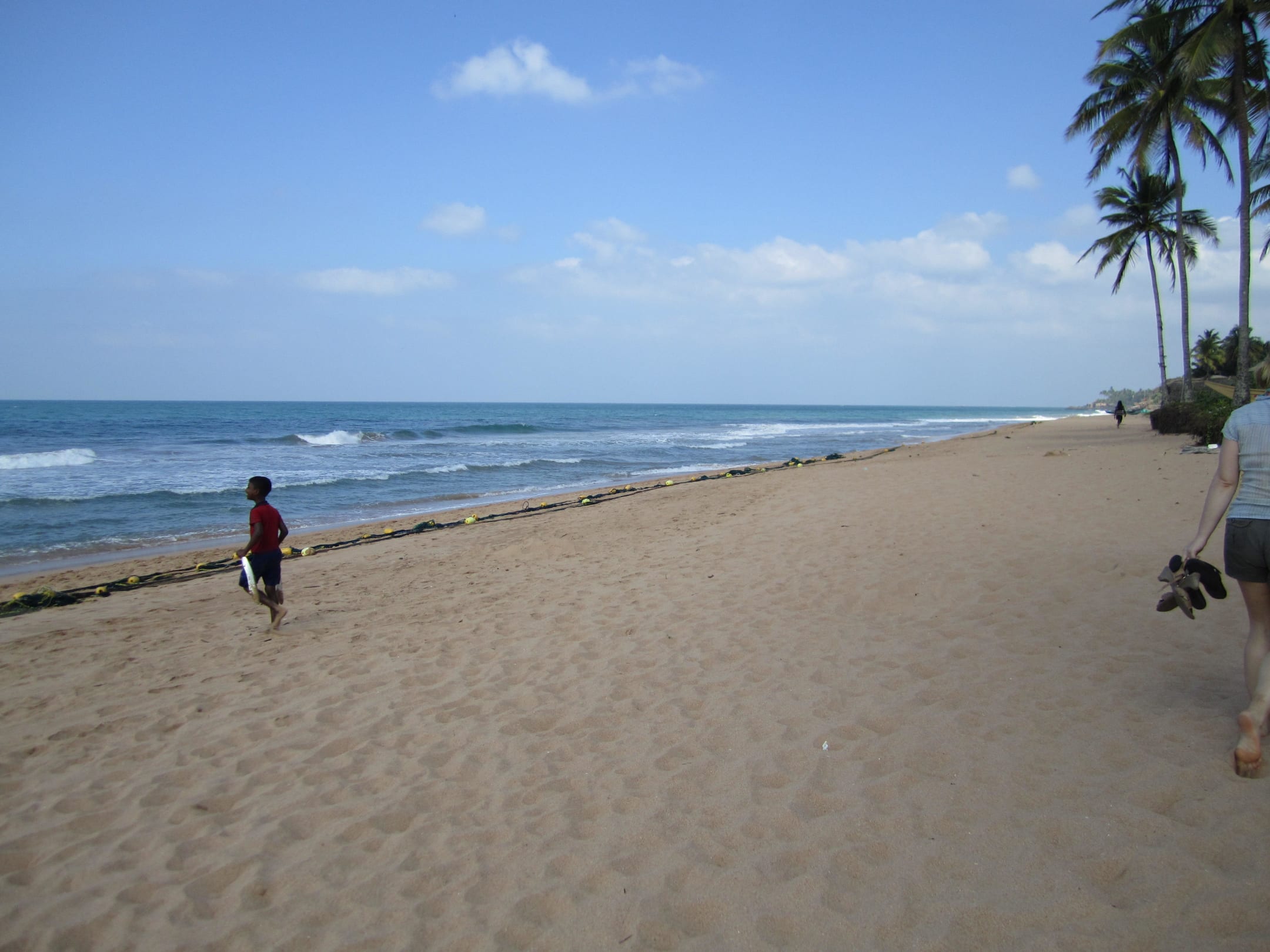 Der Strand war, als wir ihn besucht haben weitestgehend menschenleer. Ein paar andere Touristen und Fischer, die ihre Beute reinholen und uns auch Kokusnüsse von den Palmen geplückt haben.