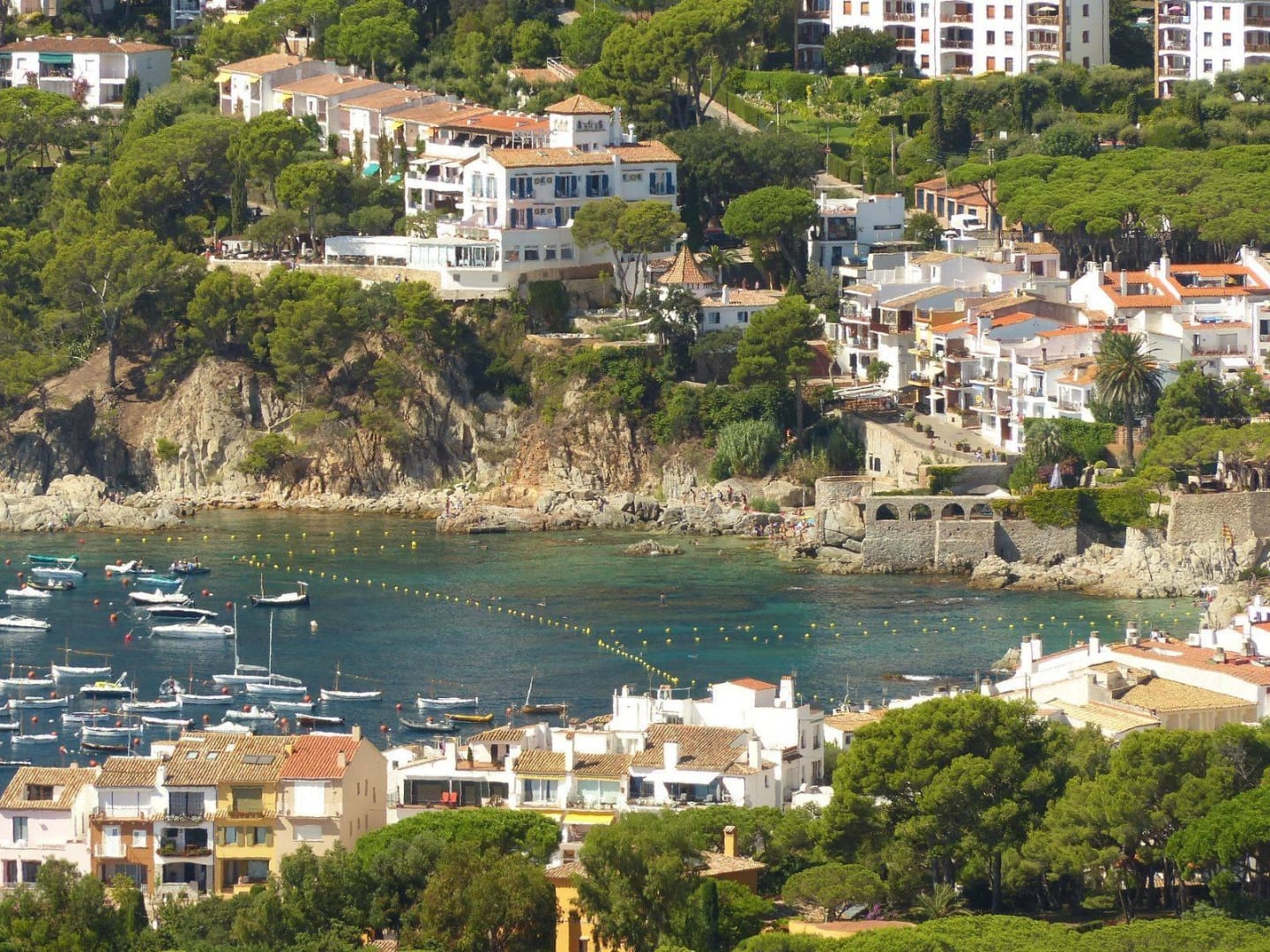 Blick von Calella zum Hotel (mit Türmchen)