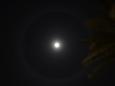Vollmond im Zenit mit Halo und Korona - Kamera liegt auf Terassenboden