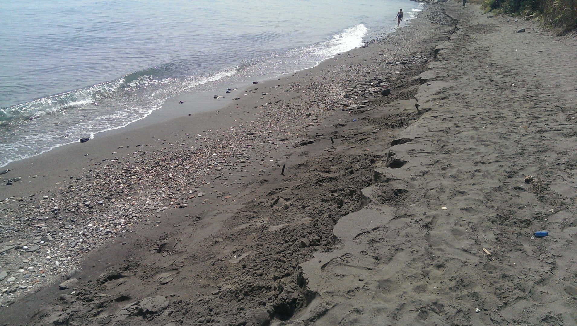Wie man sehen kann, handelt es sich hier um schwarzen Kiesel und Steinstrand