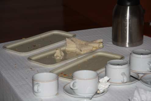 MahlzeitErst nachdem wir uns am dritten Tag beschwert hatten, wurden die Empfangsreste weggeräumt.