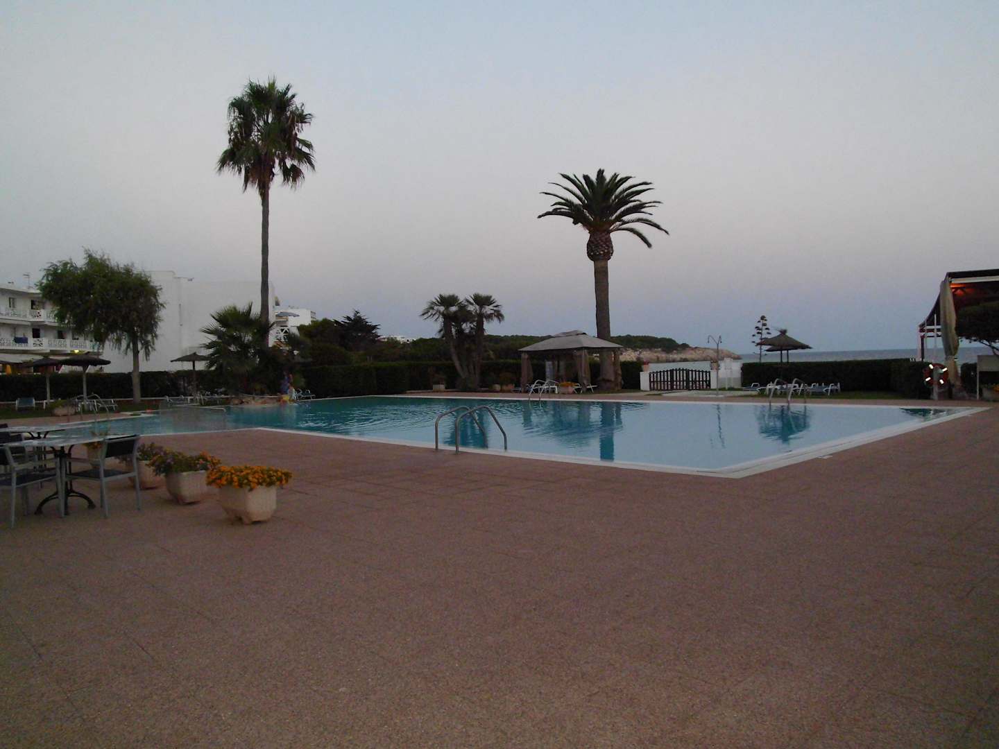 Poolanlage bei Sonnenuntergang
