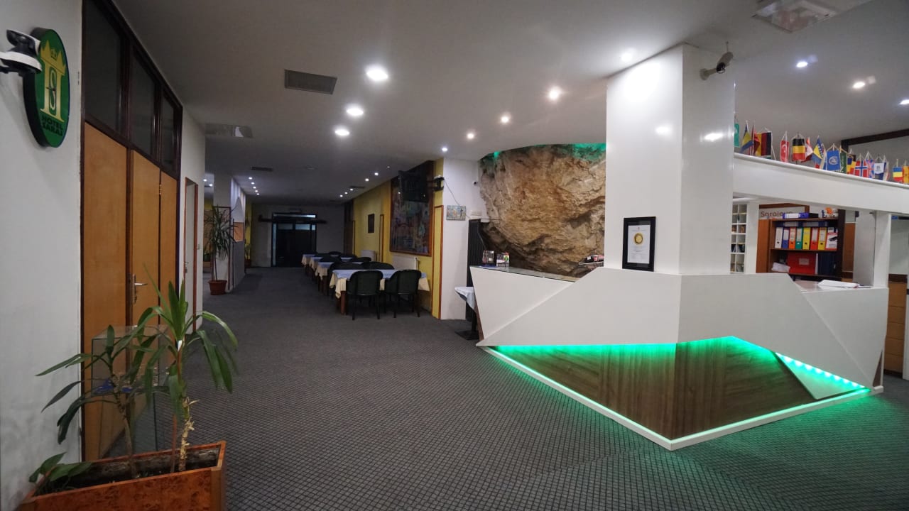 Lobby mit original Berg-Felsen (in der Mitte) an der Retzeption
