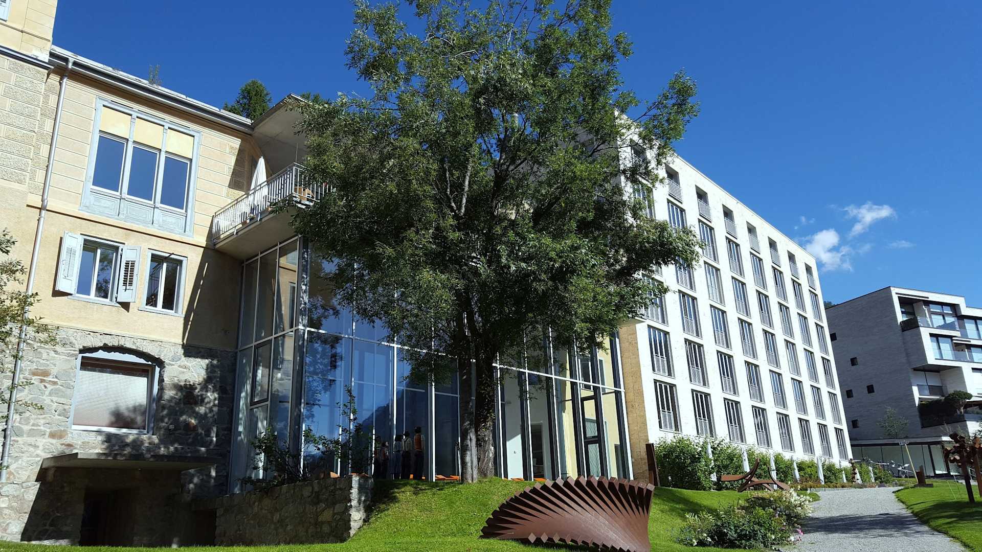 AußenansichtBlick von Süden, rechts neuer Teil Elle Tuff, in der Mitte das Innenbad, links das Stammhaus