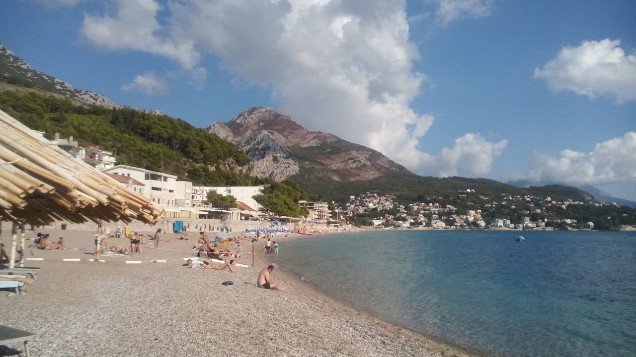 Abgeteilter Hotelstrand mit kostenlosen Liegen, Schirmen und wifi