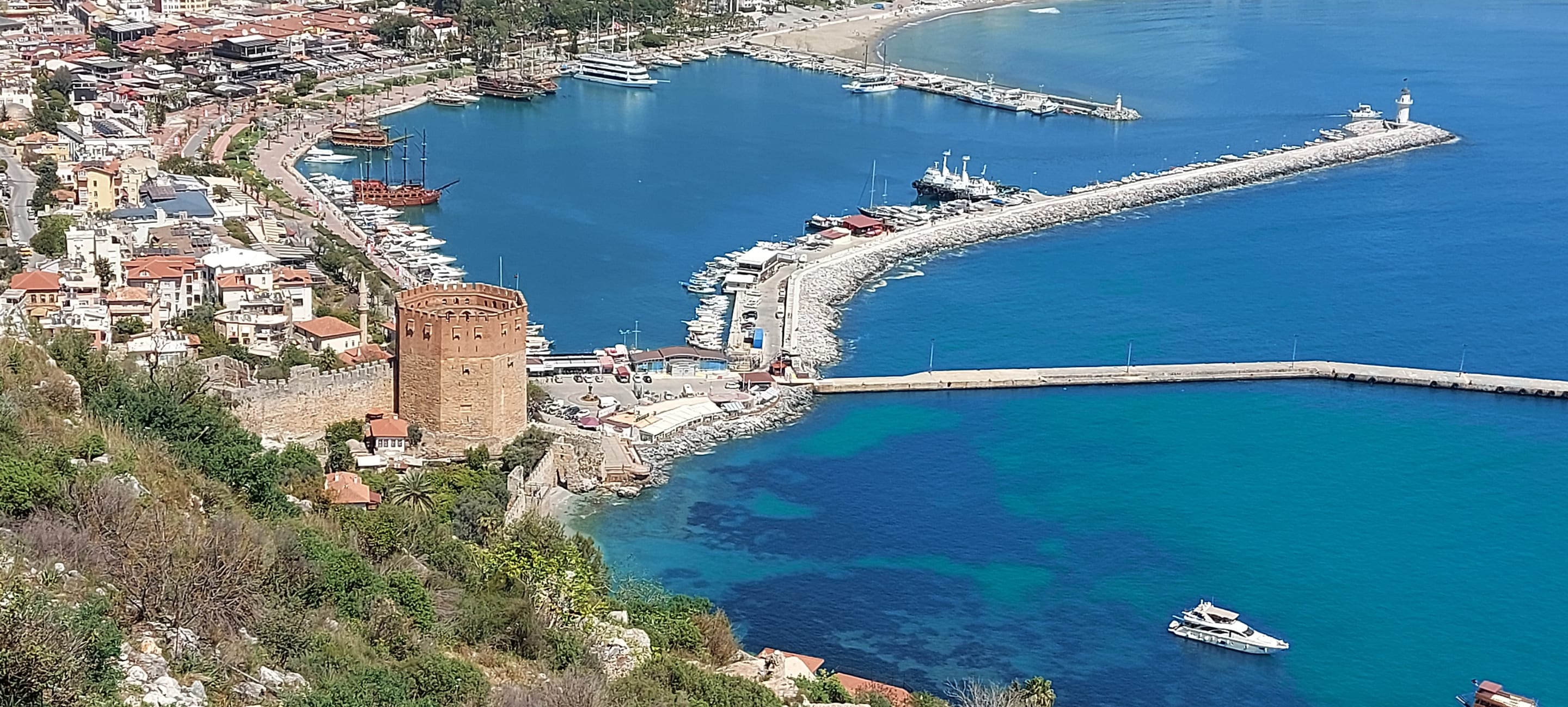 Auf dem Weg zur Burg, Blick auf den roten Turm und den Hafen