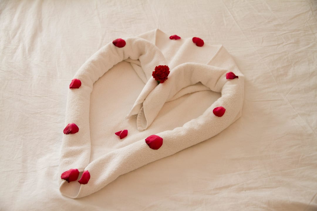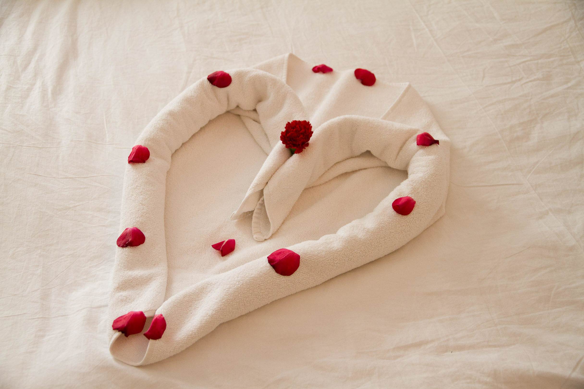 Ein kleines Present auf dem Bett.