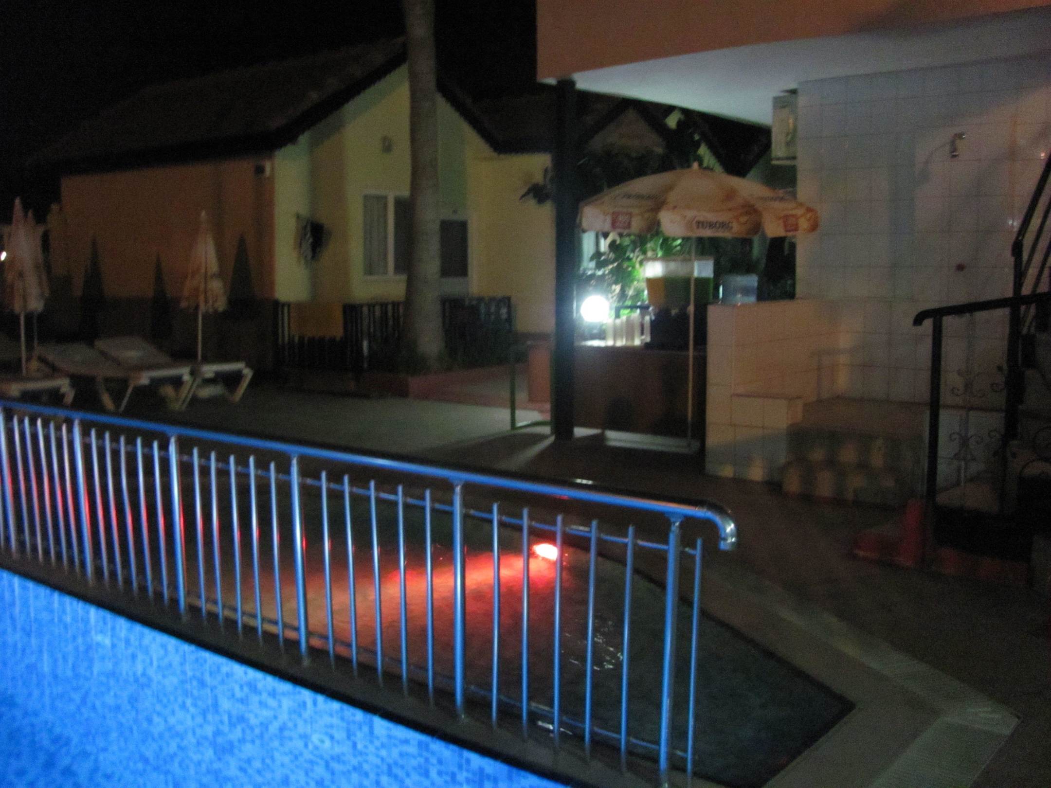 V noci světla v bazéně mění barvu