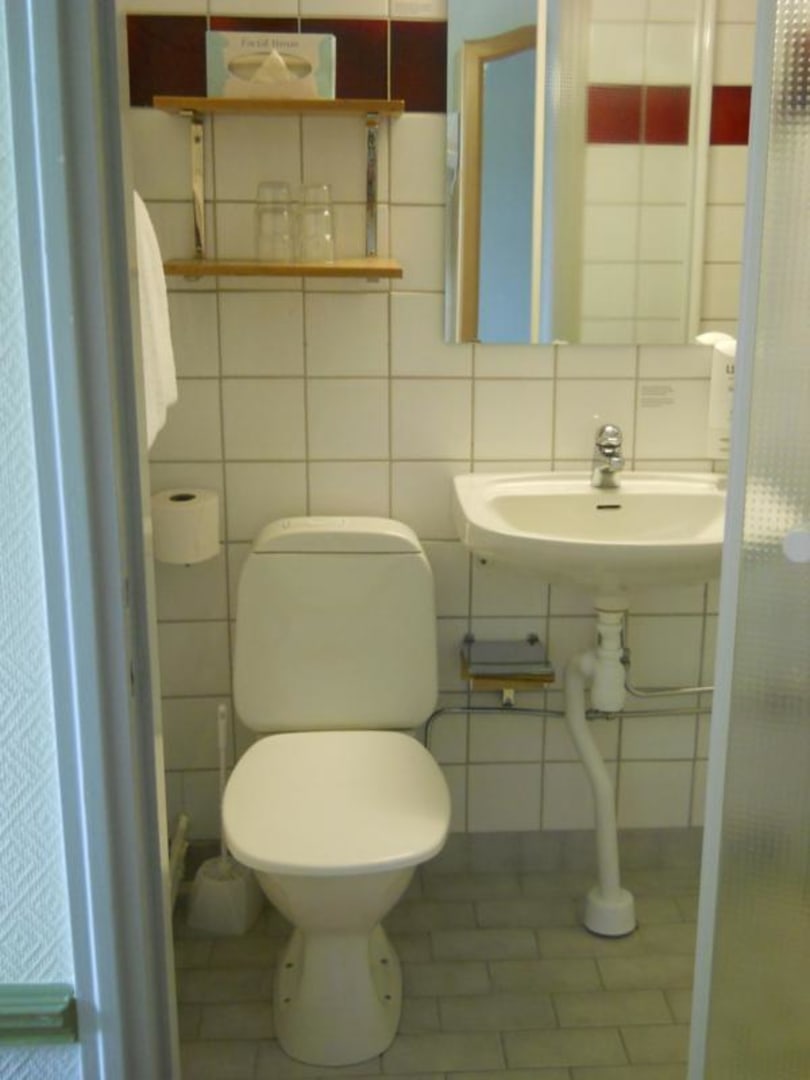 Bad mit Dusche und WC, klein und einfach,aber sauber