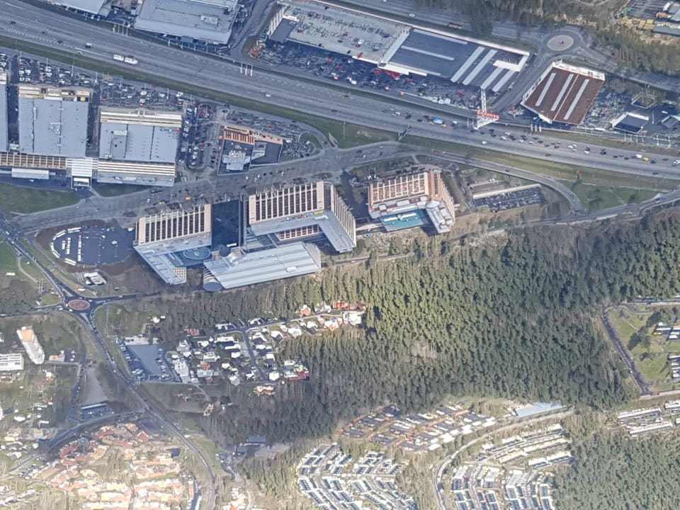 Das Hotel liegt in der Einflugschneise zum Flughafen Arlanda. Je nach Windrichtung kann man etwa 3 Minuten vor der Landung schon mal einen Blick aufs Hotel werfen.