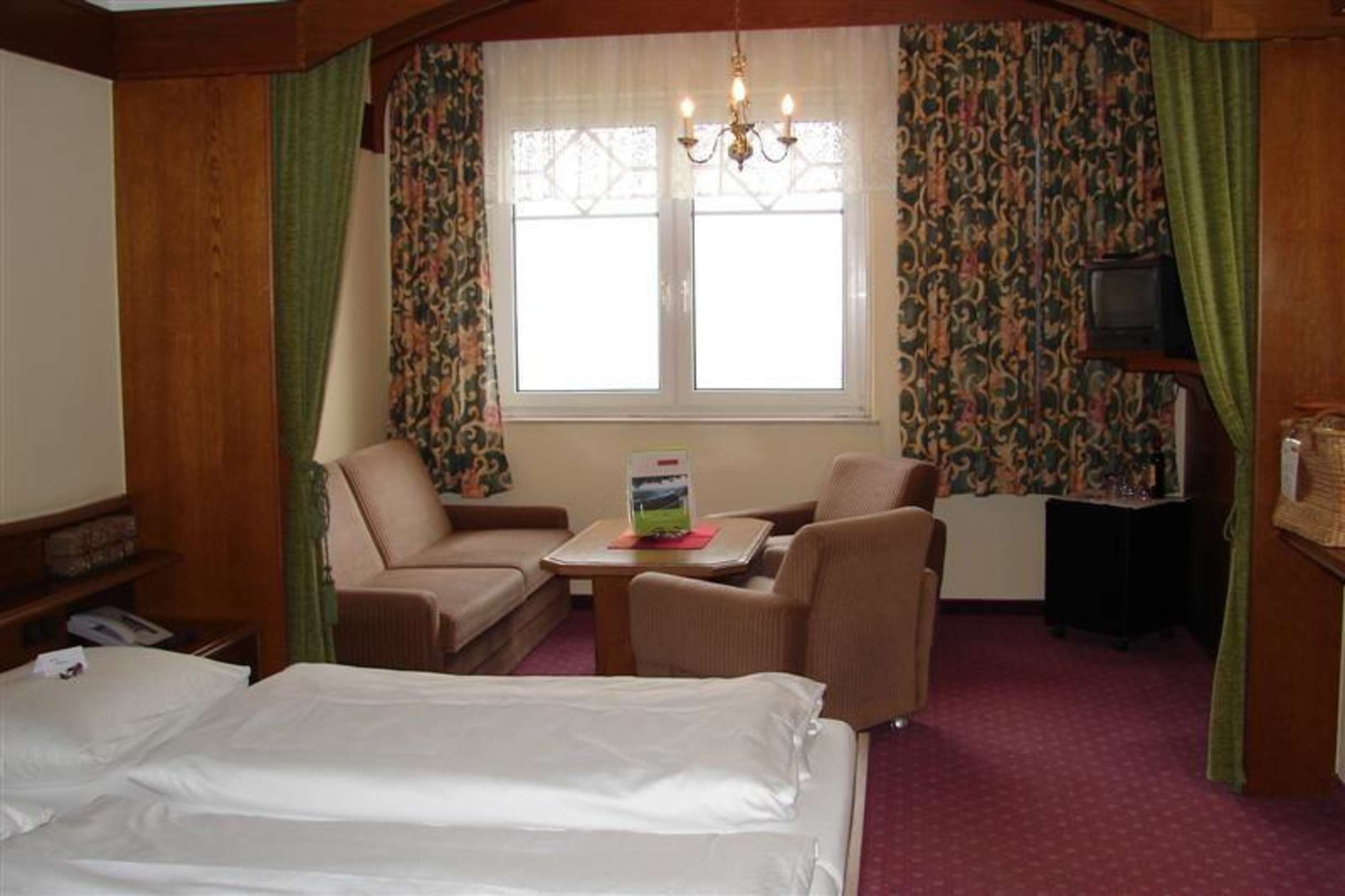 Geräumiges Hotelzimmer, in die Jahre gekommen, aber dennoch gemütlich