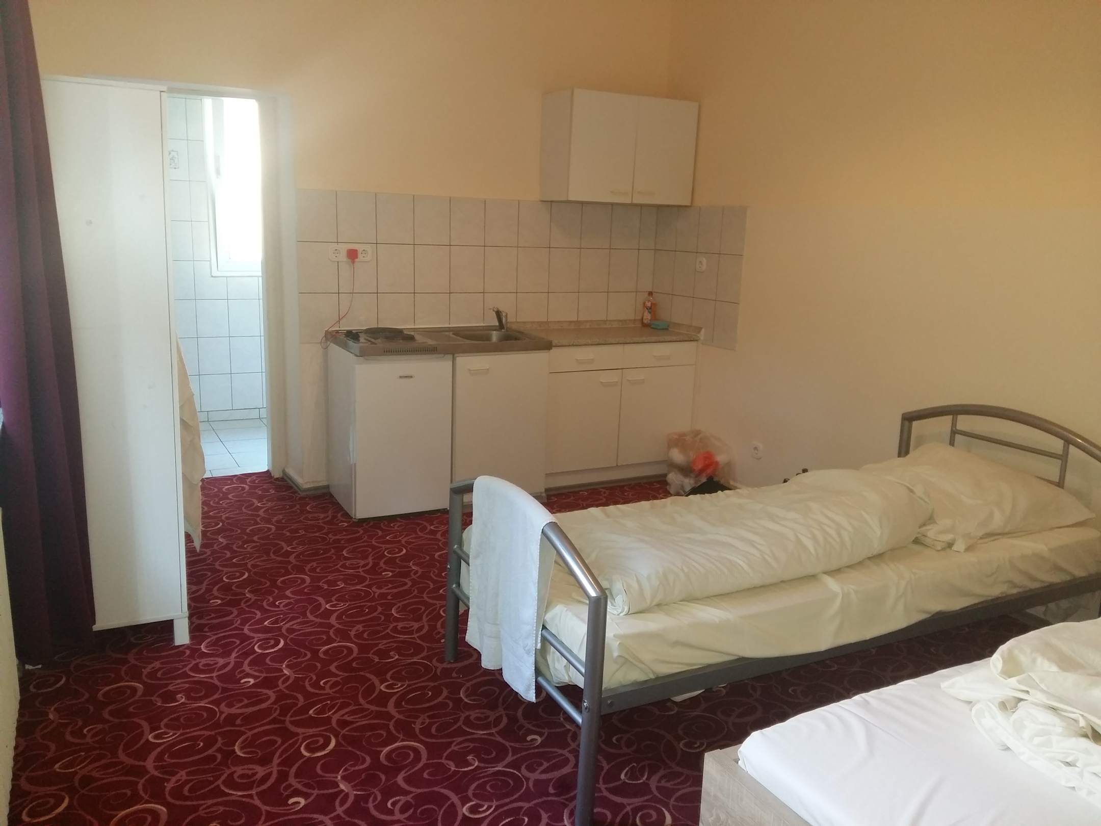 Zimmer Nr.2 mit 2 Betten,Schrank und der Kochnische.