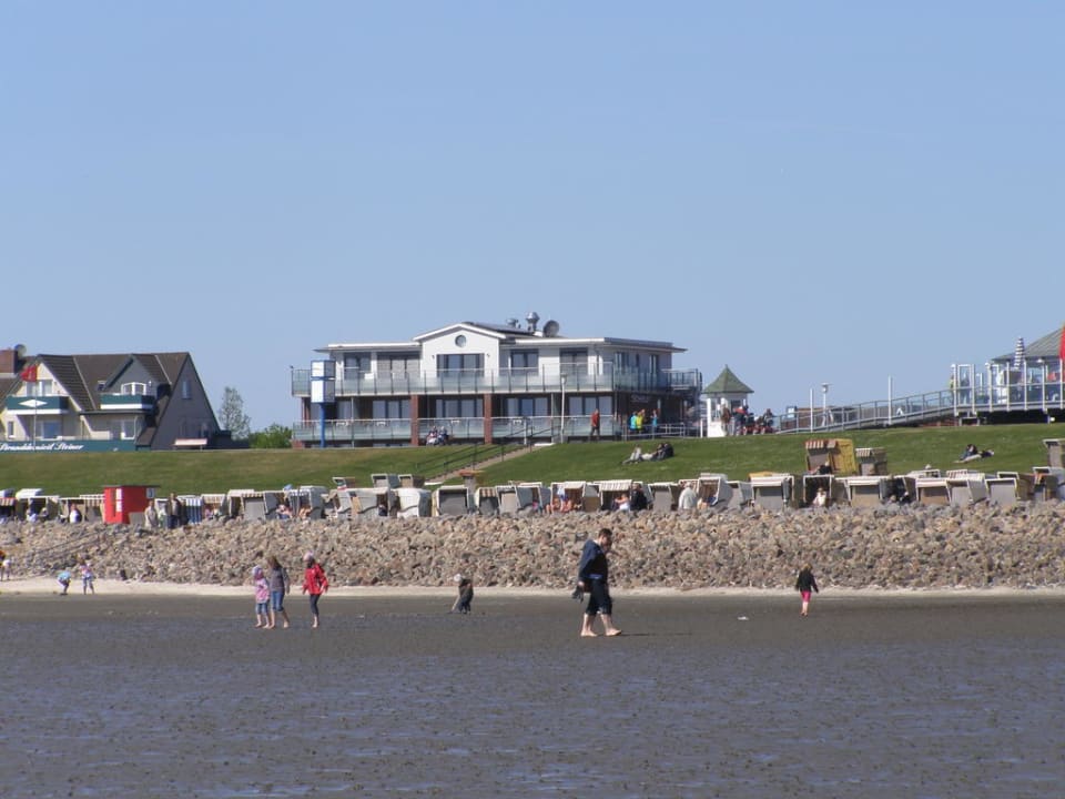 Bild aus dem Watt zum Hotel