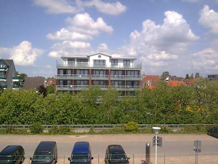 Blick vom Deich auf das Hotel Schelf