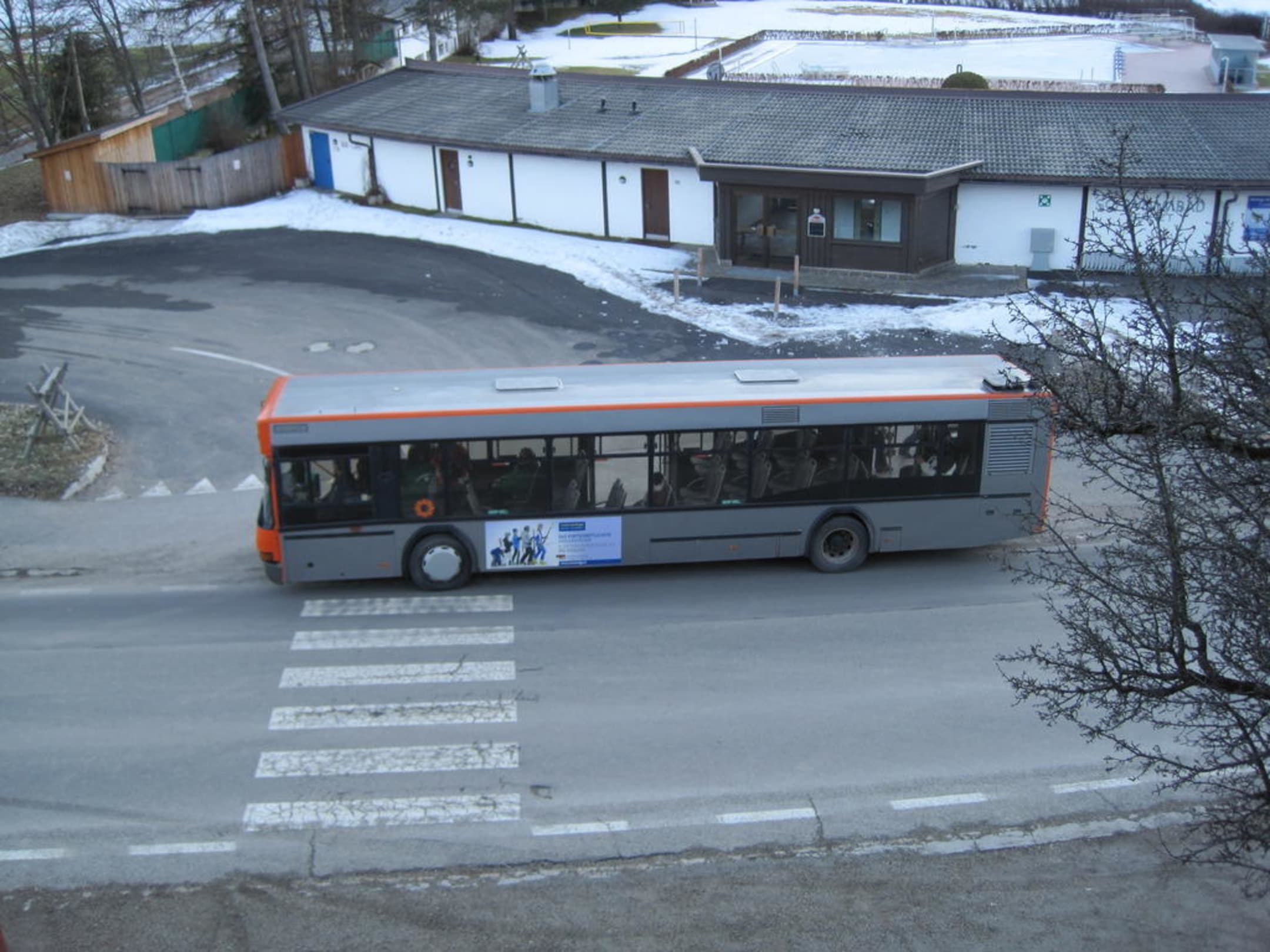 Das ist der Skibus direkt vor dem Haus