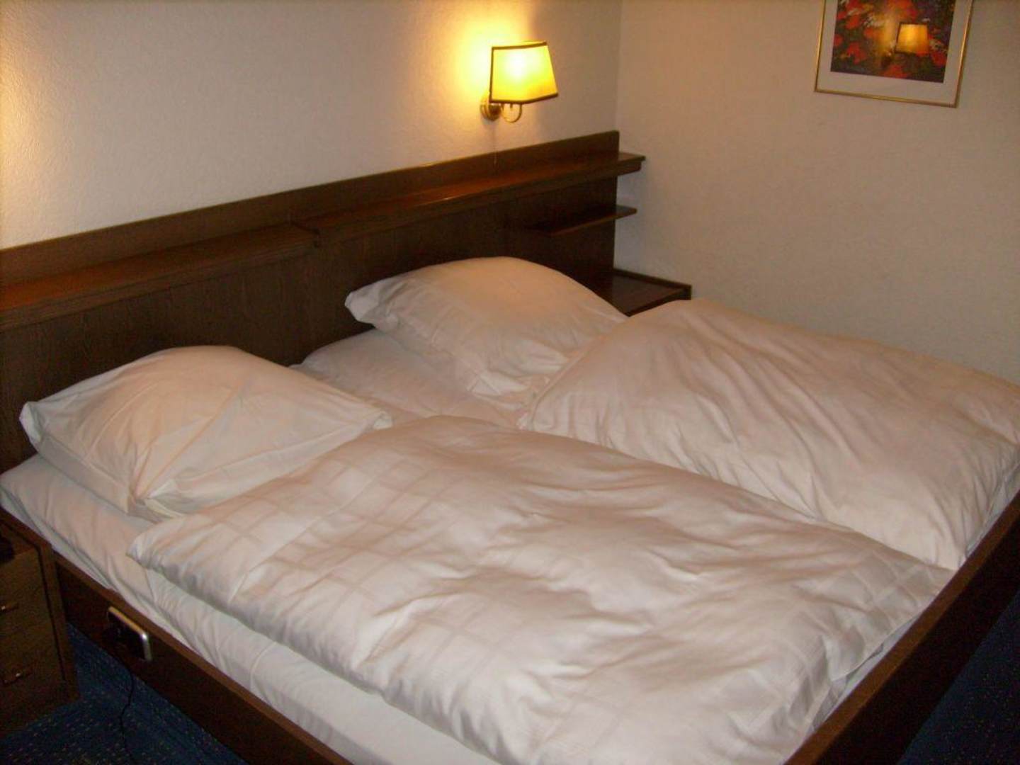 Zimmer sauber, Betten bequem. Beachtenswert die altmodische Beleuchtung.