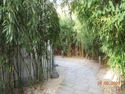 Zugang über den japanischen Garten zu den Zimmern.
