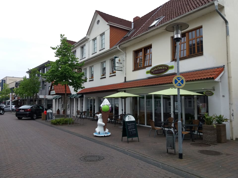 Rechts vom Hotel das "hauseigene" Eiscafe