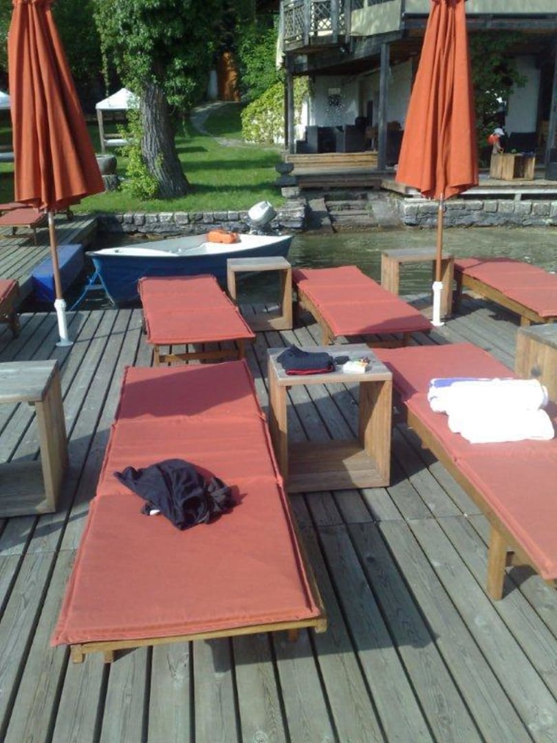 Terrasse mit Liegen und Wiese