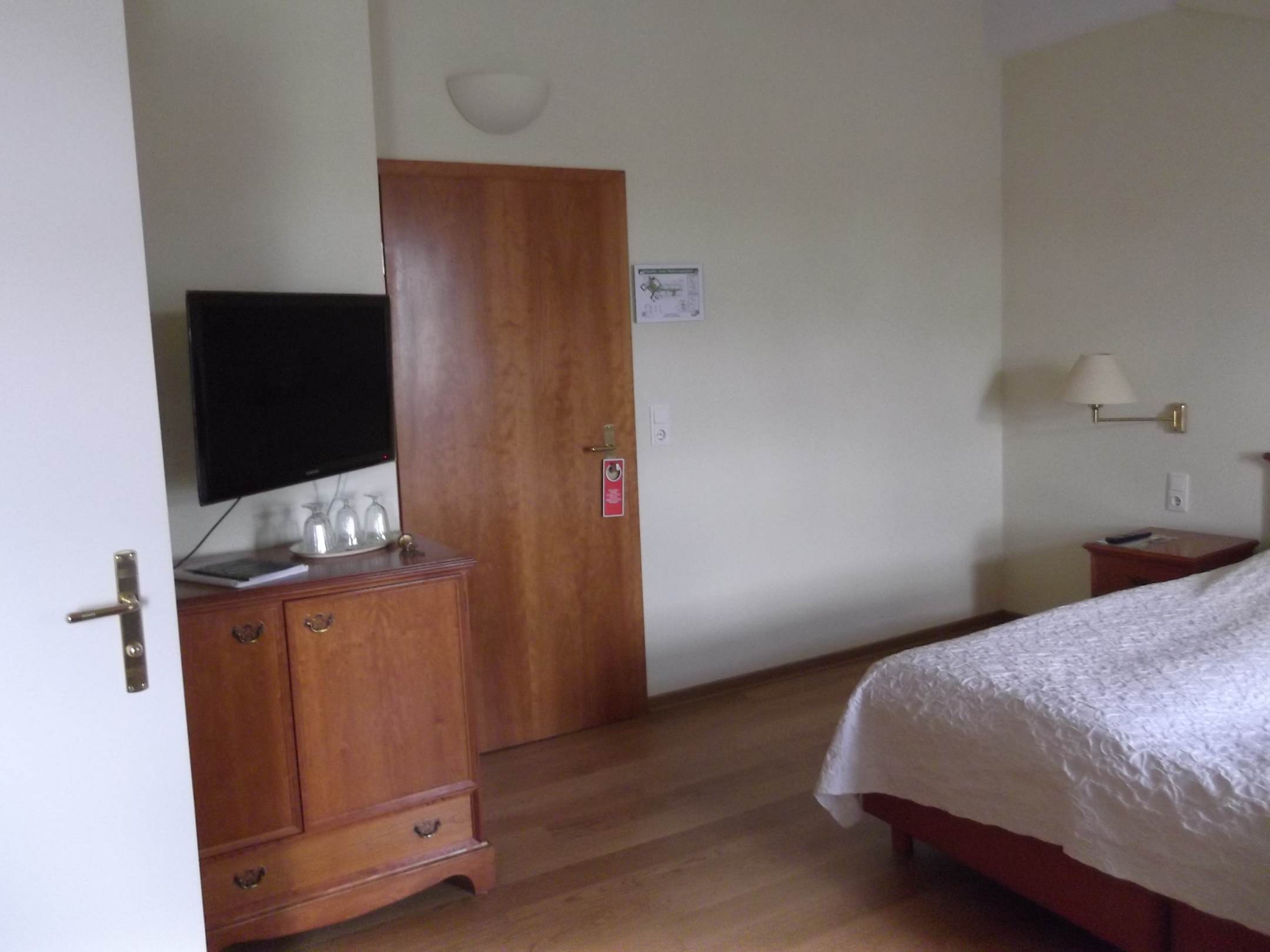 Zimmer, TV und Minibar.