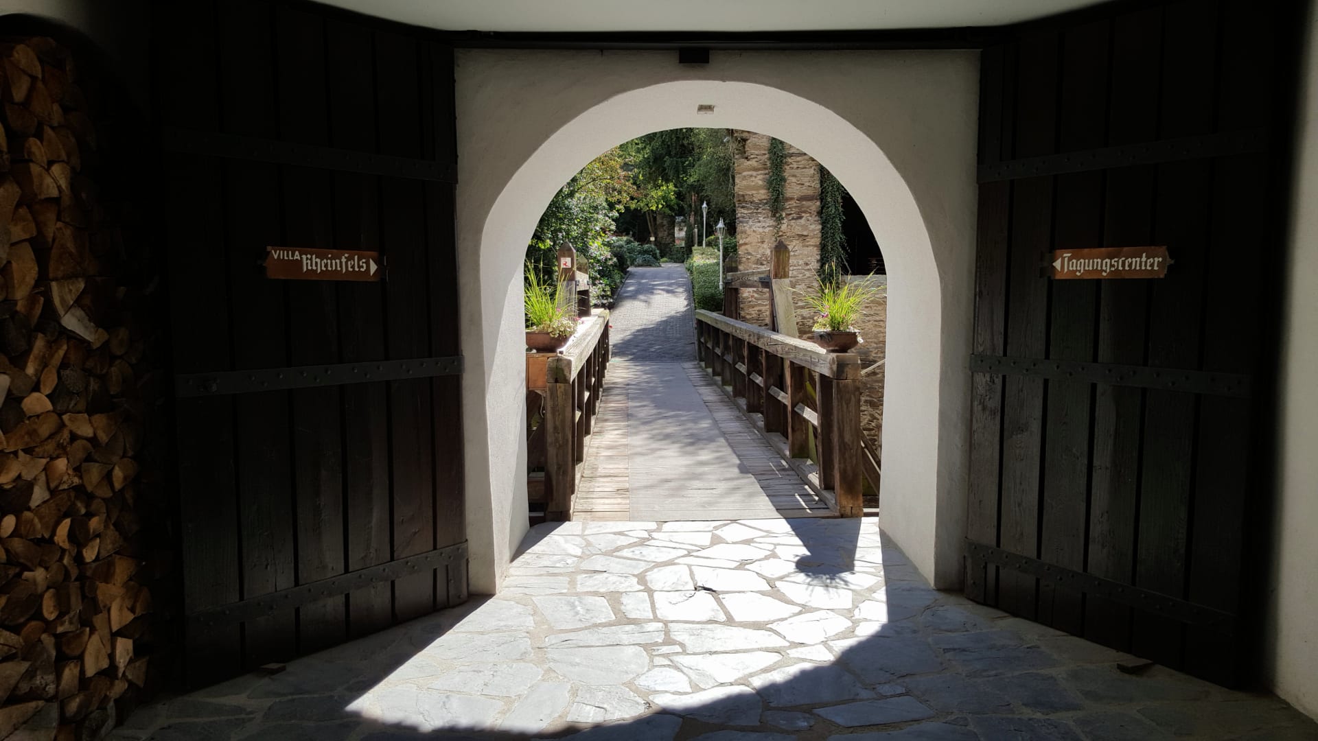 Fußgänger-Brücke über die Straße zum Hotel- und Appartmentbereich