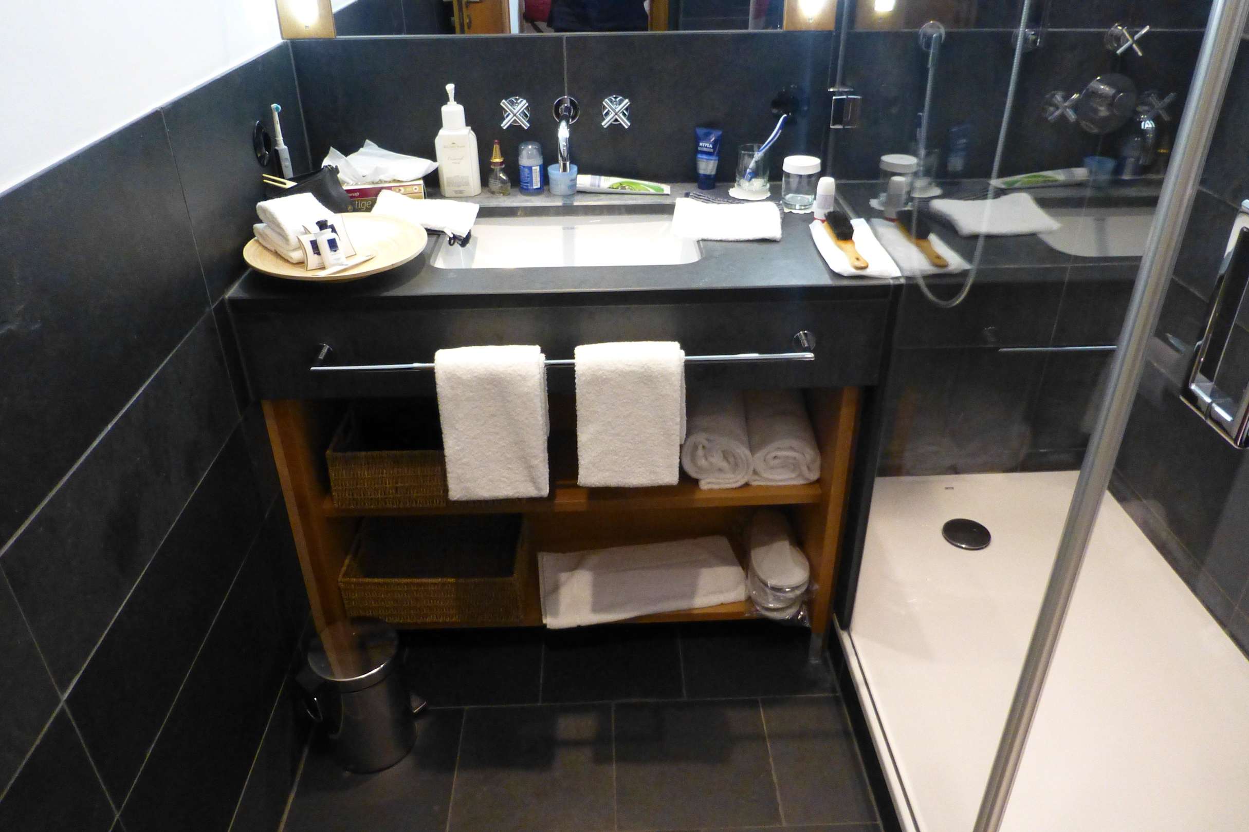 Große Dusche und Waschtisch