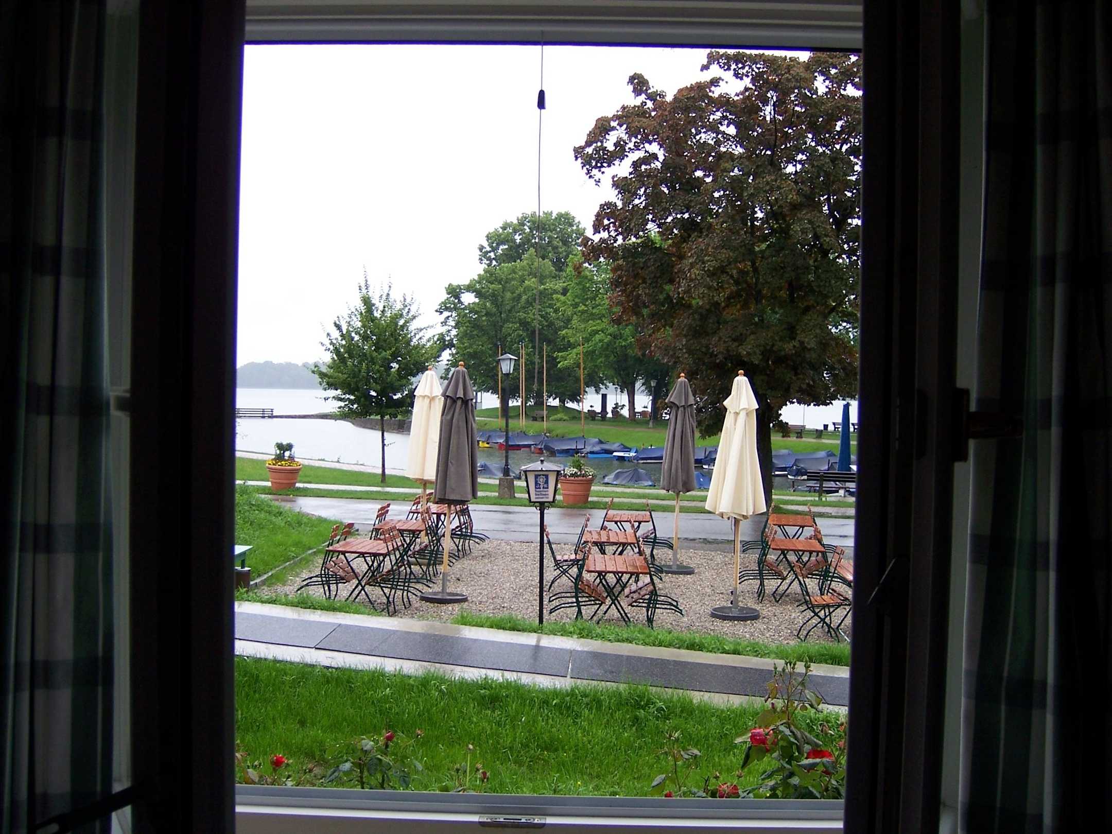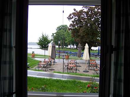 Blick vom Bett zum Biergarten