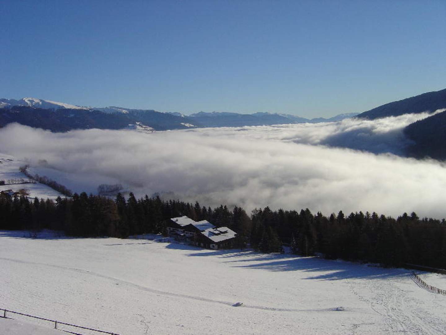 Blick vom Balkon Zimmer 224Die langsam dahinziehende Wolke über Mühlbach erinnerte uns etwas an Zuckerwatte...