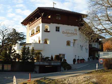 Nordansicht des HotelsGute Lage an der wenig befahrenen Ortsstraße. Freier Blick ins Tal ist nur von den Südzimmern möglich.