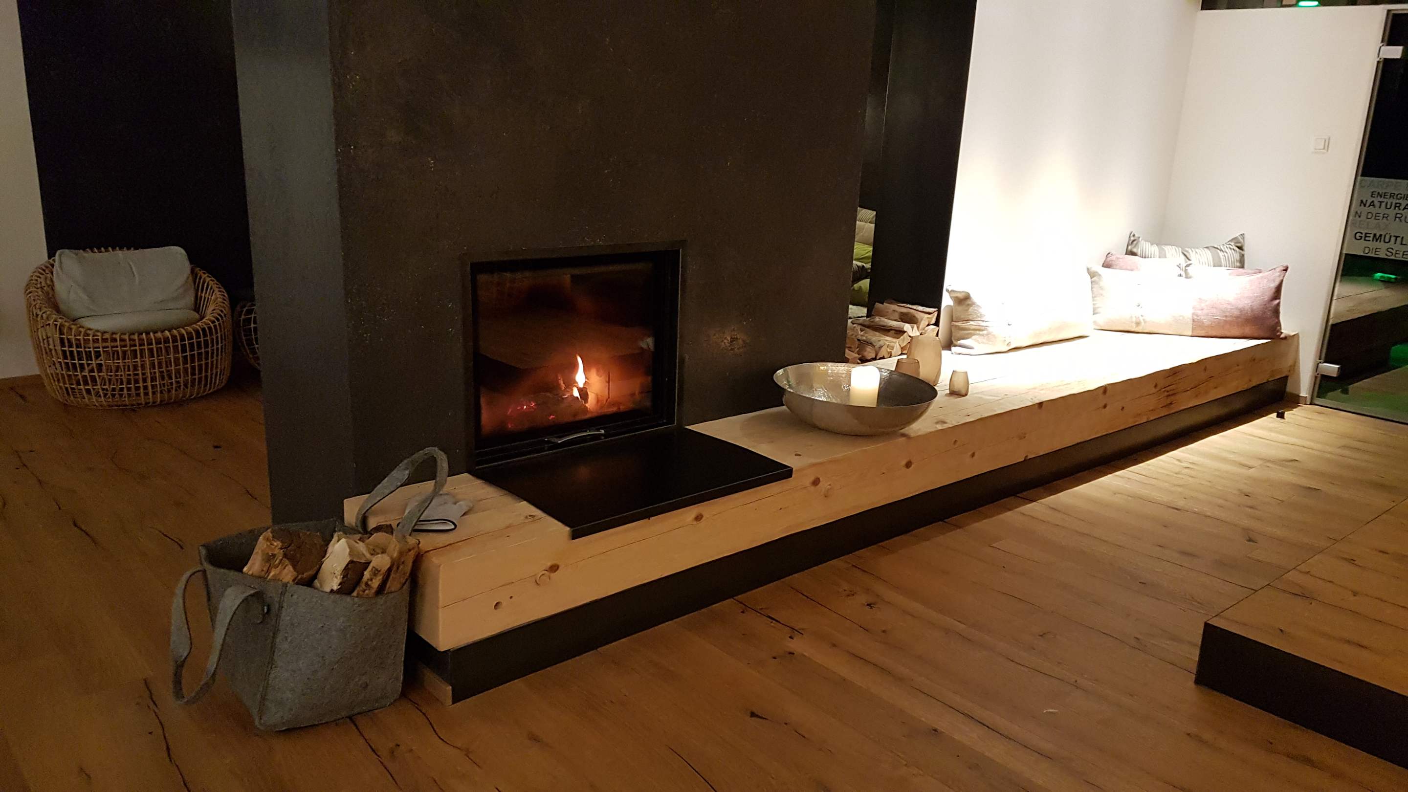 Kaminfeuer im Ruheraum