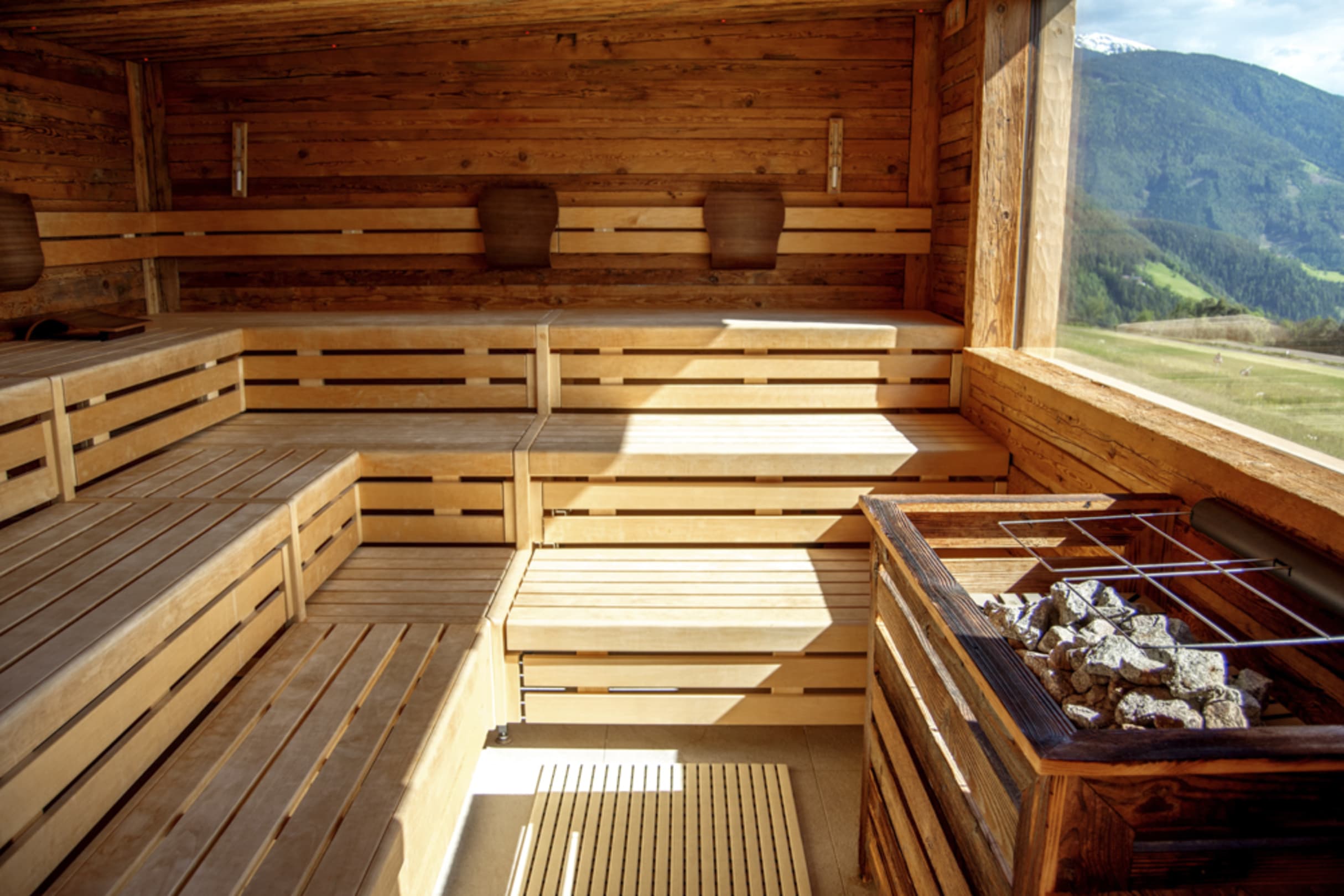 Panoramasauna mit Ausblick auf die Berge