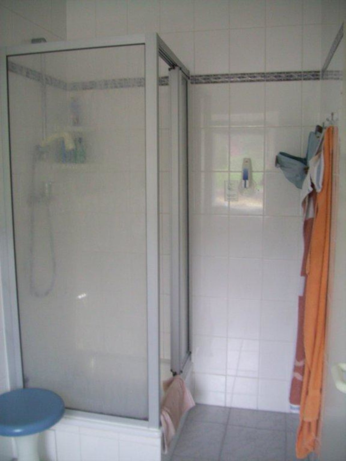 Badezimmerrechts im Badezimmer findet man die Dusche, das Bad ist überhaupt sehr geräumig und dank Fenster auch schön hell