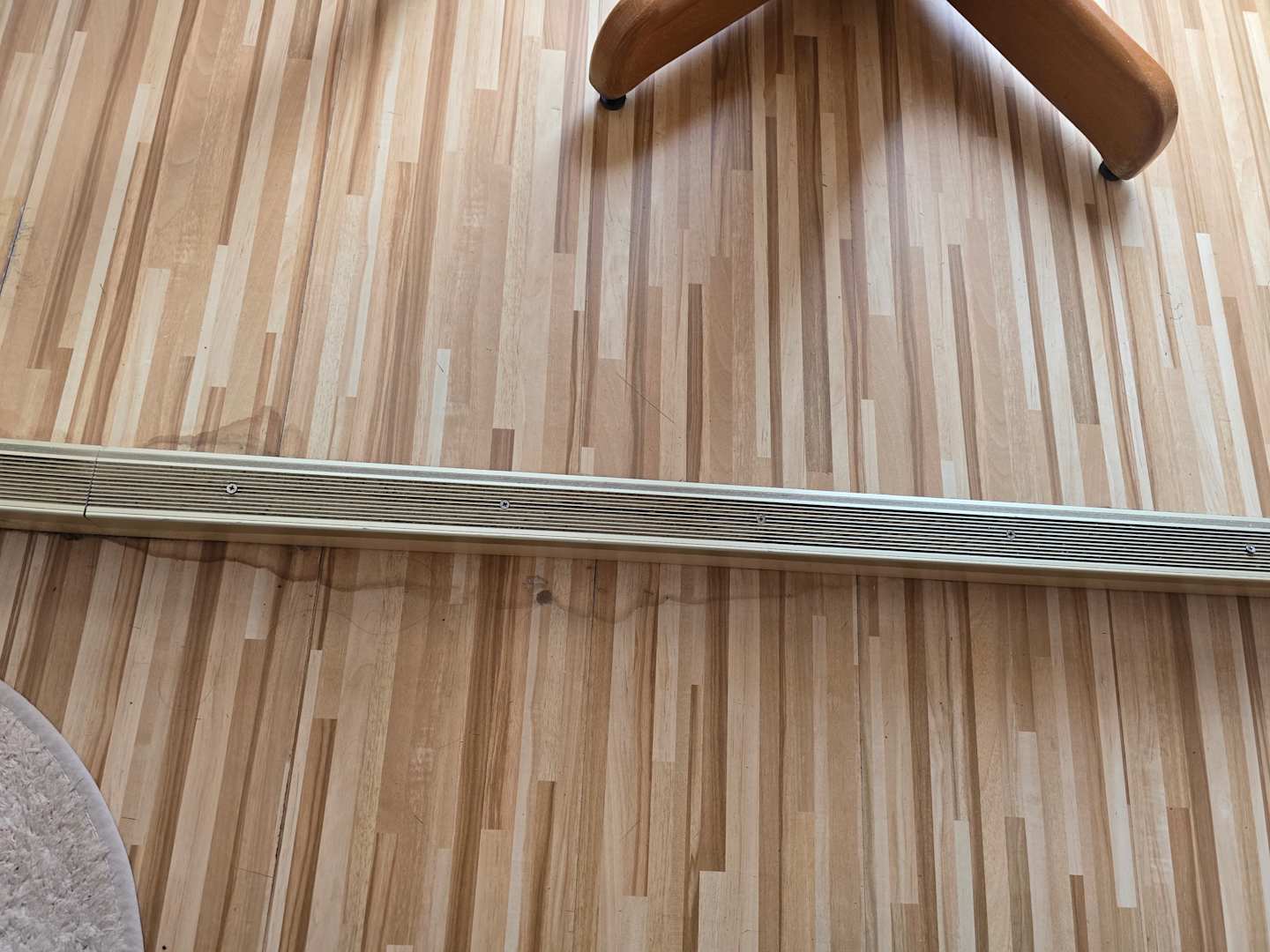 Eingetrocknete Wasserflecken auf dem Boden vor dem Fenster