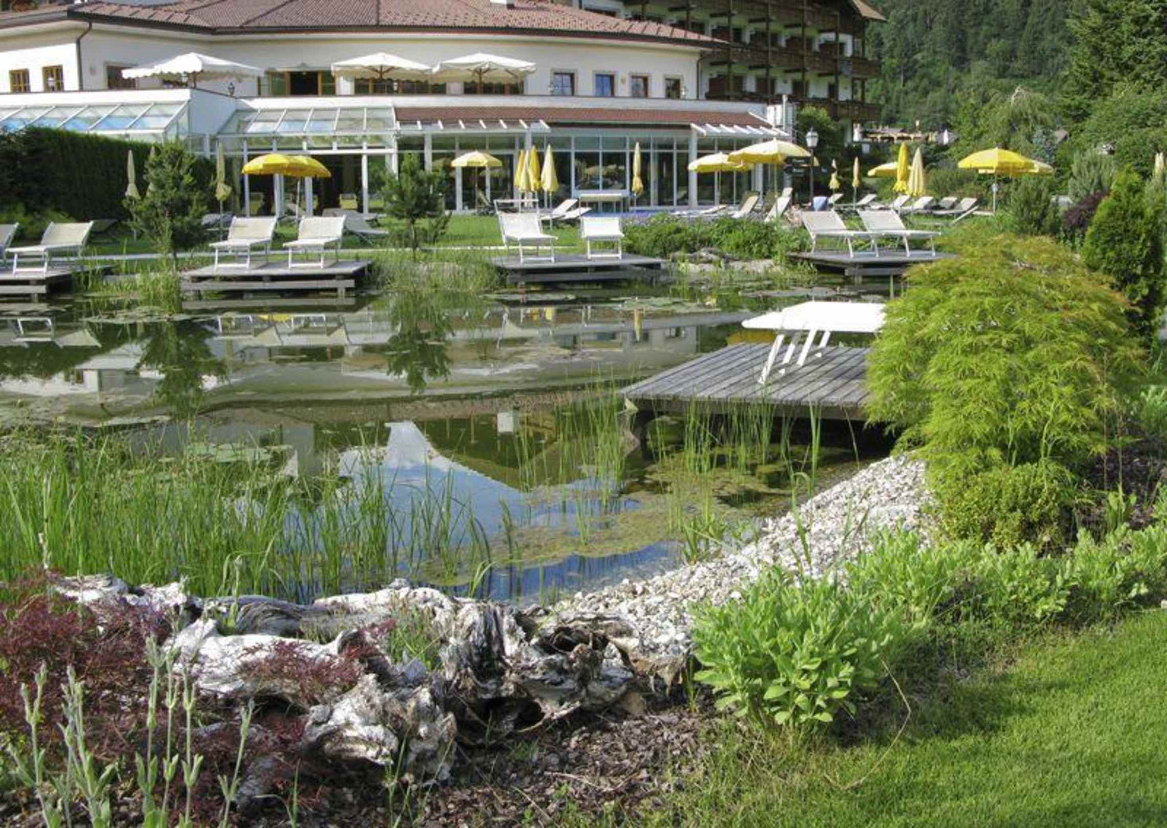 auch hier am Teich kann man auf Liegen wunderschön entspannen