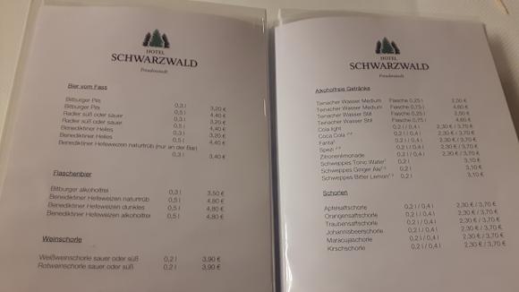 Getränkekarte im Restaurant