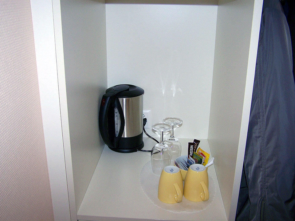 Wasserkocher, Tassen und Kaffee, bzw. Tee stehen im Zimmer zur Verfügung