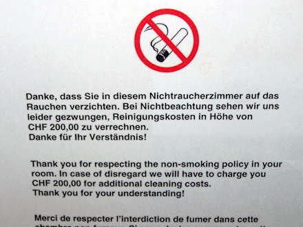 Hinweisschild Nichtraucherzimmer