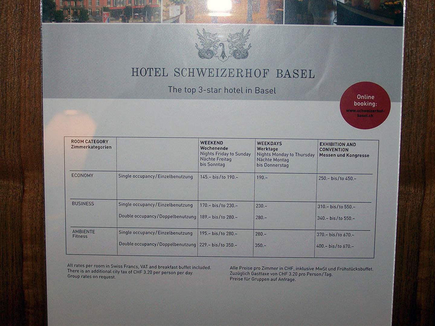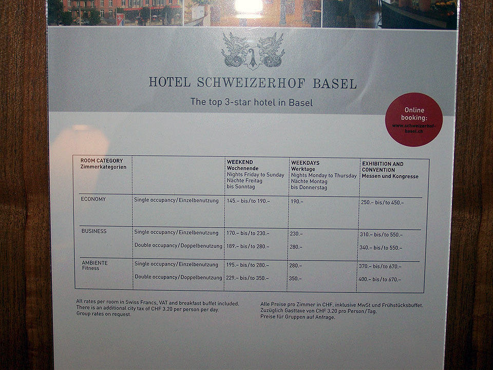 Preisaushang im Zimmer
