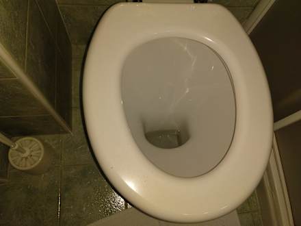 Bad mit schmutziger Toilettenbrille