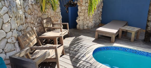 Bestuhlung wurde im Außenbereich erneuert - wie hier am kleinen Innenpool.
